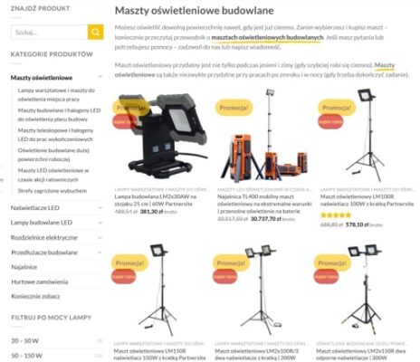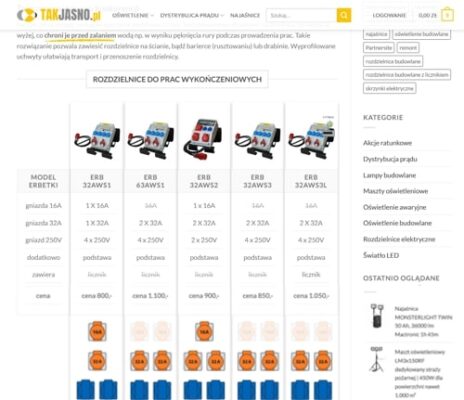 Produkty obejmują oświetlenie LED oraz rozdzielnice do dystrybucji prądu.